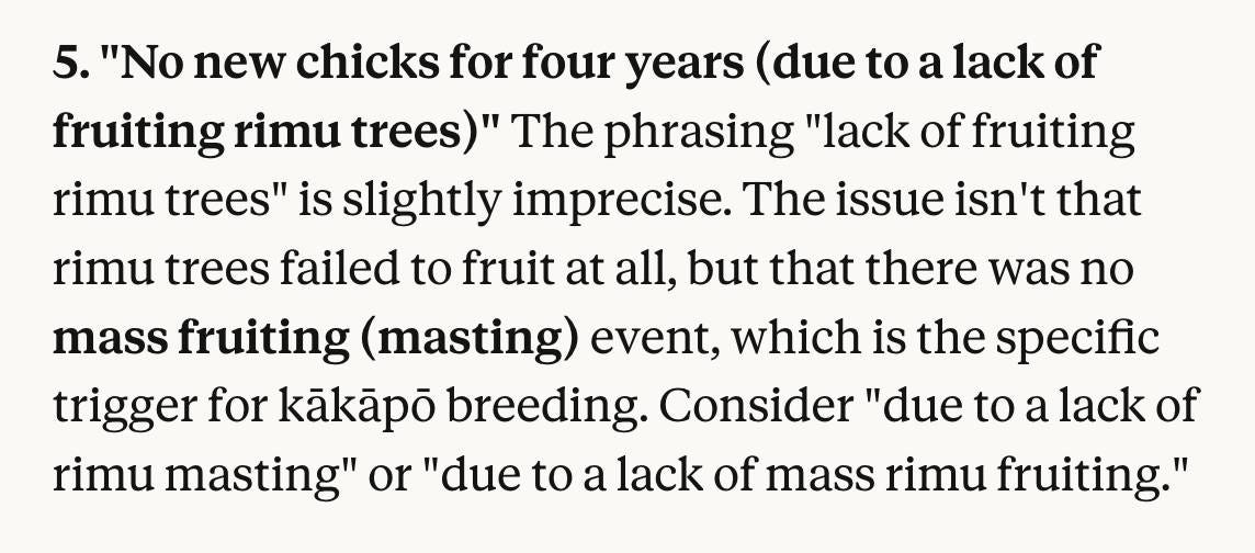 I use Claude as a proofreader for spelling and grammar via this prompt which also asks it to “Spot any logical errors or factual mistakes”. I’m delighted to report that Claude Opus 4.6 called me out on this one: