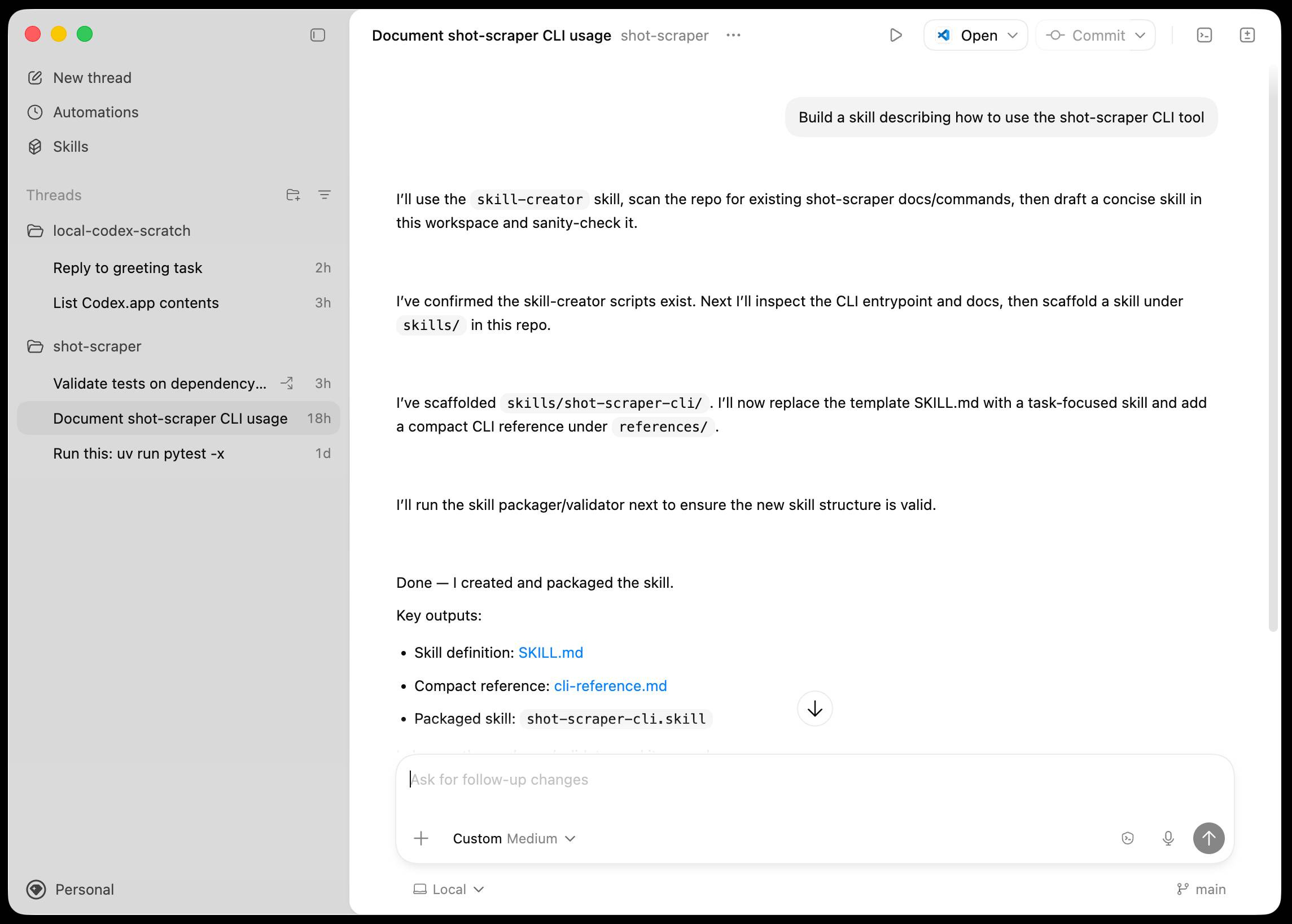 When I want to quickly implement a one-off experiment in a part of the codebase I am unfamiliar with, I get codex to do extensive due diligence. Codex explores relevant slack channels, reads related discussions, fetches experimental branches from those discussions, and cherry picks useful changes for my experiment. All of this gets summarized in an extensive set of notes, with links back to where each piece of information was found. Using these notes, codex wires the experiment and makes a bunch of hyperparameter decisions I couldn’t possibly make without much more effort.