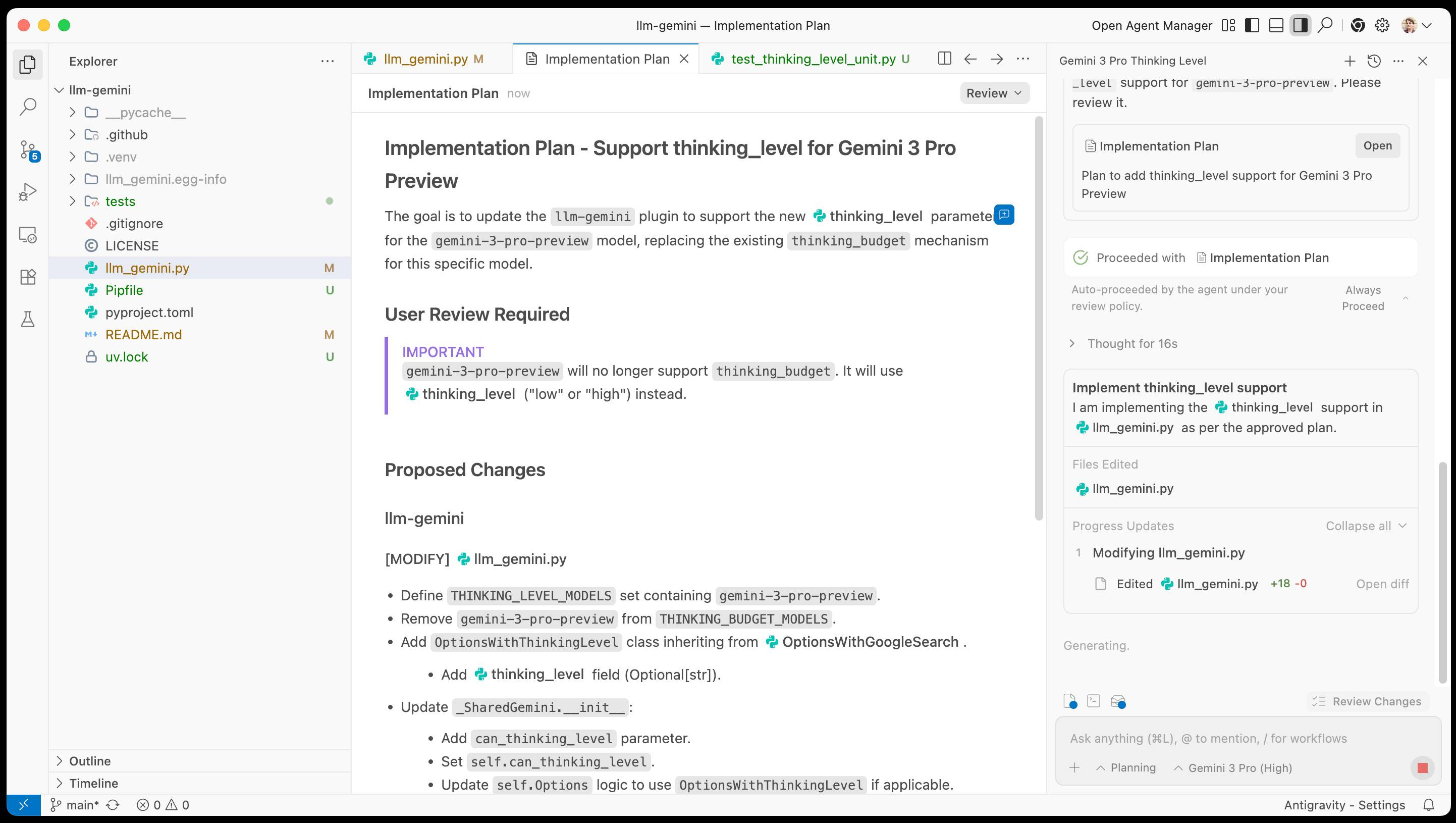 I tried using Antigravity to help add support for Gemini 3 to by llm-gemini plugin.